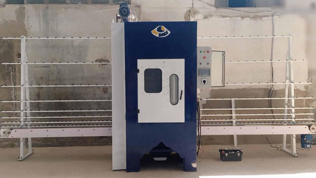 ماكينة صنفرة الزجاج ، تعمل الماكينة بإحدى الطريقتين الإلكترونية واليدوية وذلك لسهولة التشغيل ، من مزايا ماكينة صنفرة الزجاج إنها قادرة على حمل لوح زجاج حتى 183 سم مع التحكم بدقة المقاس حتى 0.1 سم.