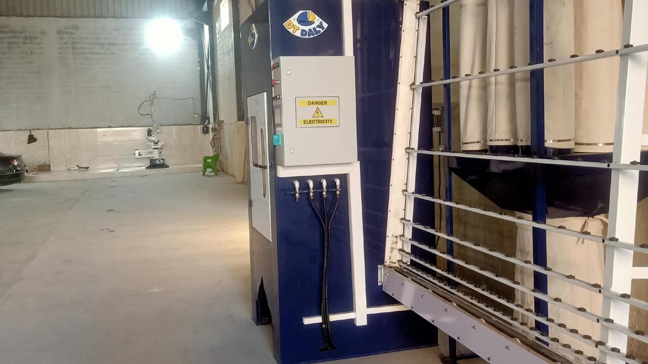 الماكينة تخدم العاملين فى قطاع صنفرة ألواح الزجاج